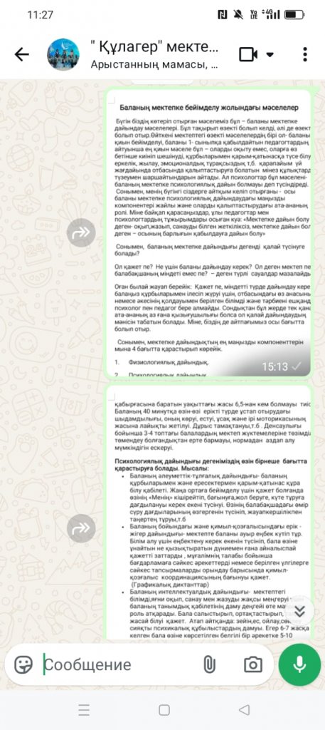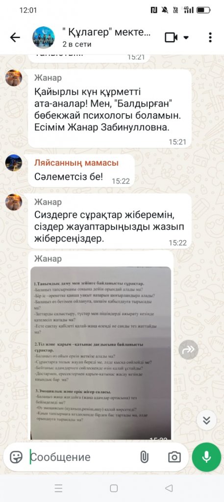 «Баланың мектепке дайындығы» тақырыбында онлайн түрінде ата- аналар жиналысы