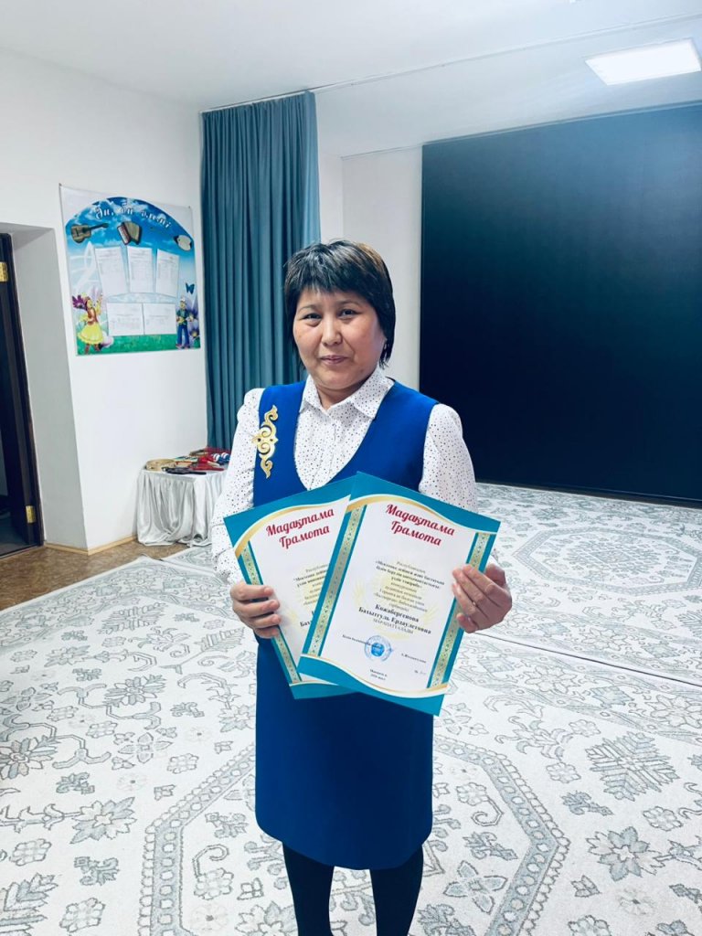 «Мектепке дейінгі және бастауыш білім берудің одағы: үздік тәжірибе» облыстық сырттай байқауының аудандық кезеңіне бөбекжайымыздан мектепалды топ тәрбешісі Кожабергенова Бакытгуль Ердаулетовна қатысып, жүлделі І орынды иеленіп, Мадақтамамен марапатталды....