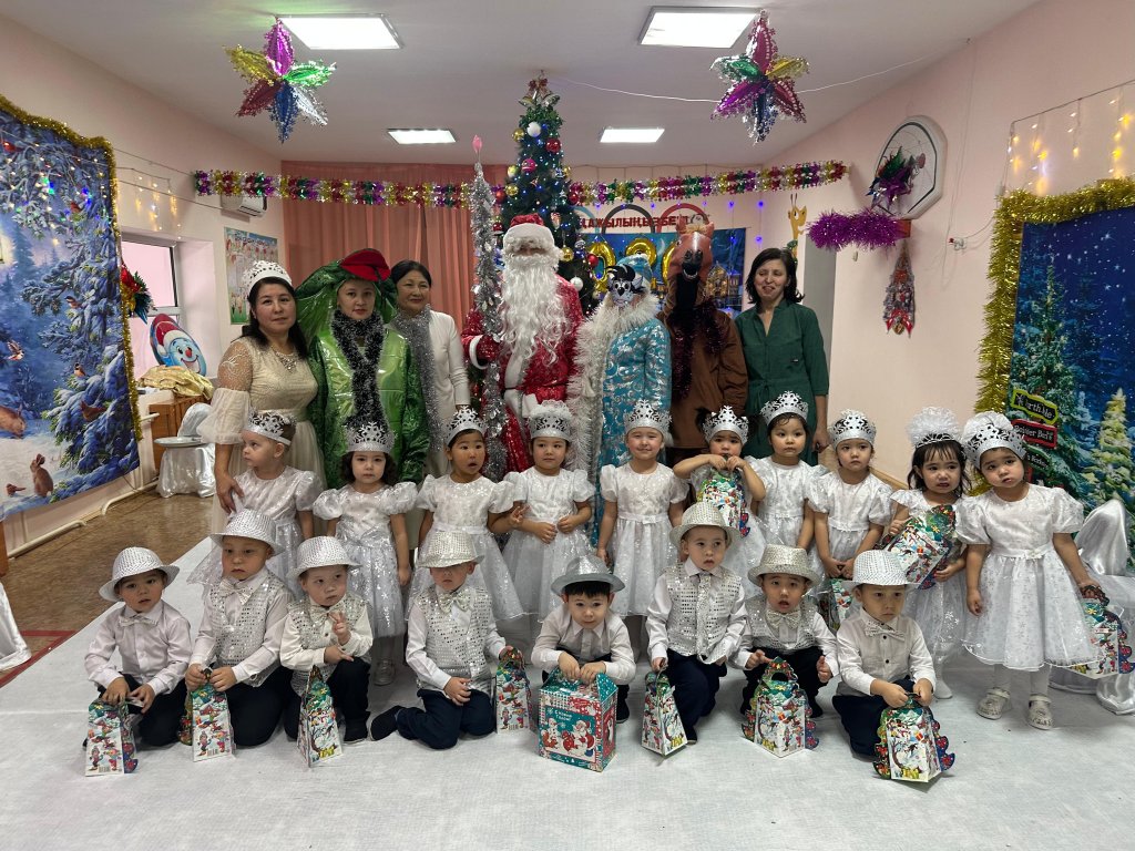 Жүргізуші: Аяз ата алыстан келдіңіз. Шаршаған боларсыз, отырыңыз дем алыңыз. Балаларды сіздерге арнап жаттаған тақпақ, би, әндерін тамашалаңыздар.