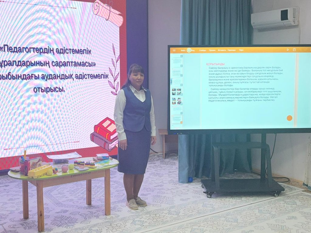 «Балдырған» бөбекжайының қабырғасында мектепке дейінгі ұйым педагогтері үшін «Педагогтердің әдістемелік құралдарының сараптамасы» тақырыбындағы аудандық әдістемелік отырыс өтілді. Мақсаты: аттестаталушы педагогтердің әдістемелік құралдарымен таныстыру, қорғау. Іс-тәжірибе алмасу.